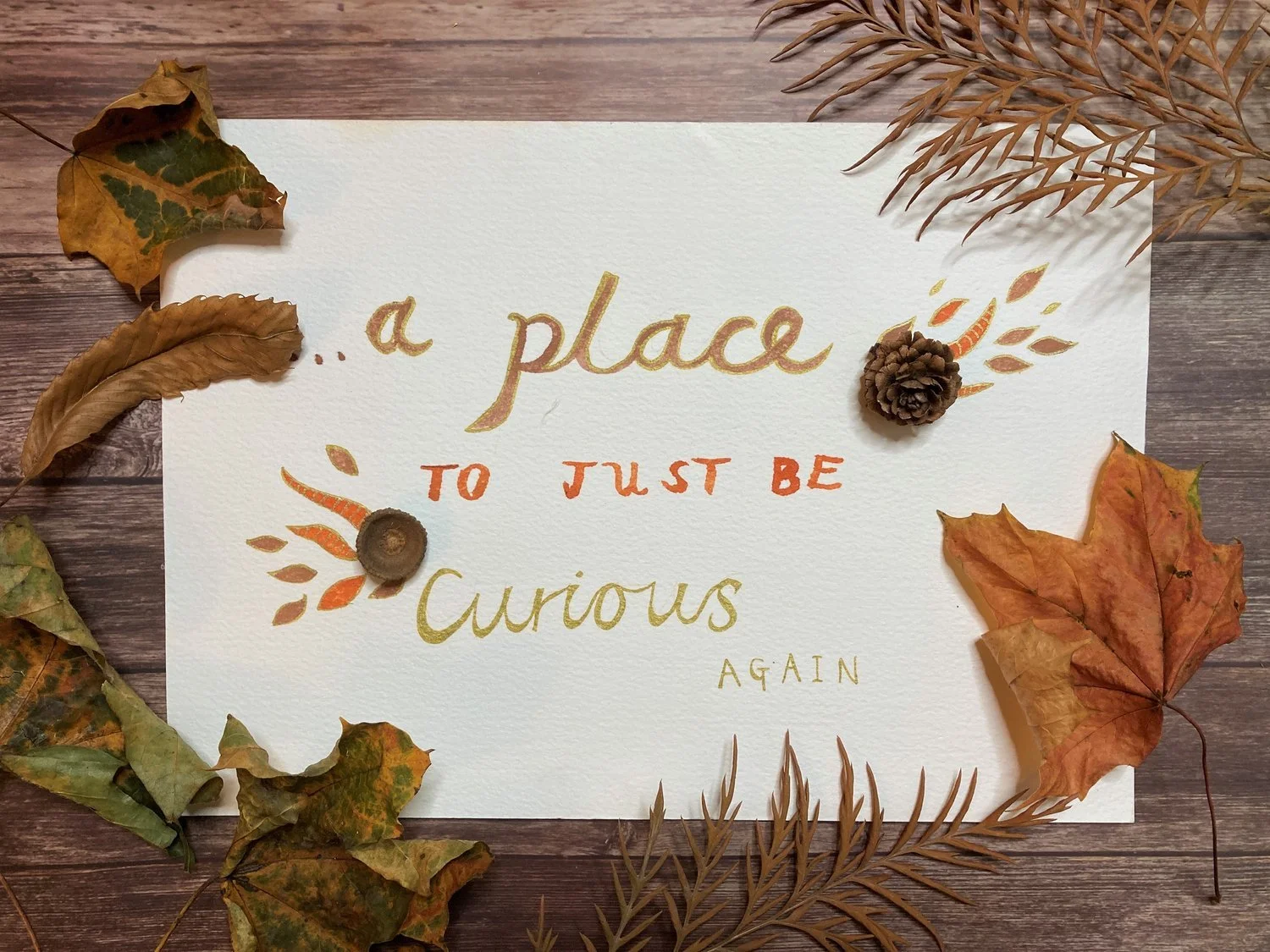 The aim of this activity is to create something that - if you’d like to - you could put up to remind you of the ways you as an individual connect with nature, and how you can express this through your own creativity. Putting up words or sentences can act as a touchstone to remembering what sparks your curiosity and creativity when the everyday is taking up most of your time and energy. I know for me it is a good reminder to find 10 minutes in my day to let myself connect with those parts of myself, and I hope it can offer that you you occassionally too.