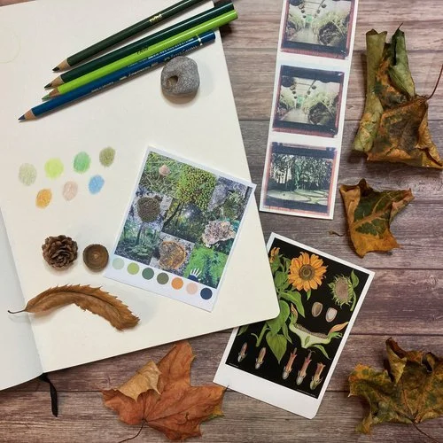 To begin, spend 5 minutes looking at your photos and colour palette from Day 1. Here are some questions you could think about while looking at them: