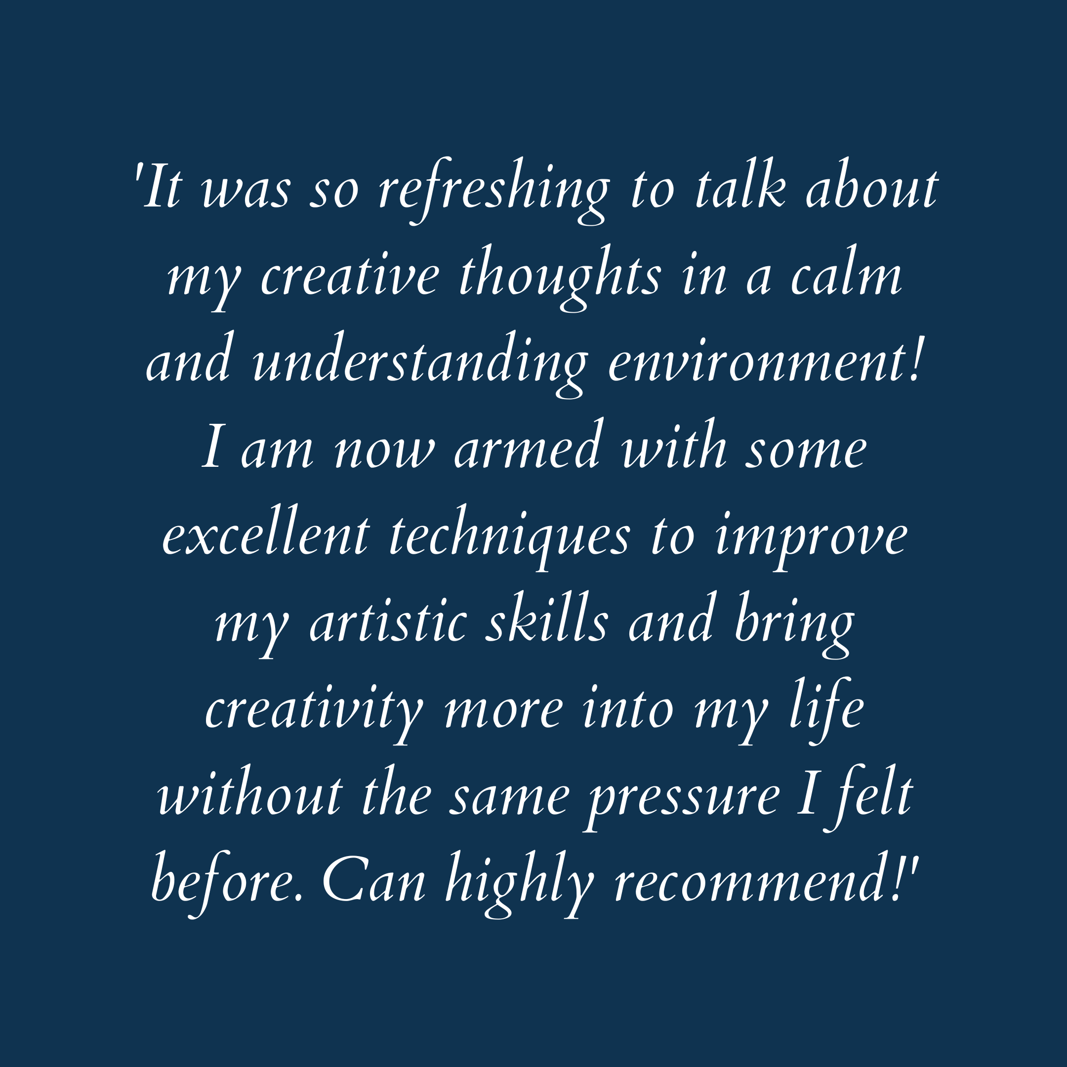 ‘For years I had been telling myself that "I could be a writer one day", but had never quite taken it seriously. Deep down I didn't think of myself as a creative person. But after working with Eleanor I have already taken steps on the path of uncovering my creative self and believing I can make it happen. Eleanor immediately understood how creativity could fit in with my work and family life. She gave me simple, practical steps to make space for my ideas and form a regular writing habit as part of my nature walks. She has helped me refine this practice as I test it out and I already feel so much more confident that I can take this further. Thank you Eleanor for your friendly and insightful support!’